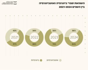 עם זאת, אחוז ספרי האוטוביוגרפיה, מכלל הביוגרפיות, עלה בשנת -2024 ל-36%
